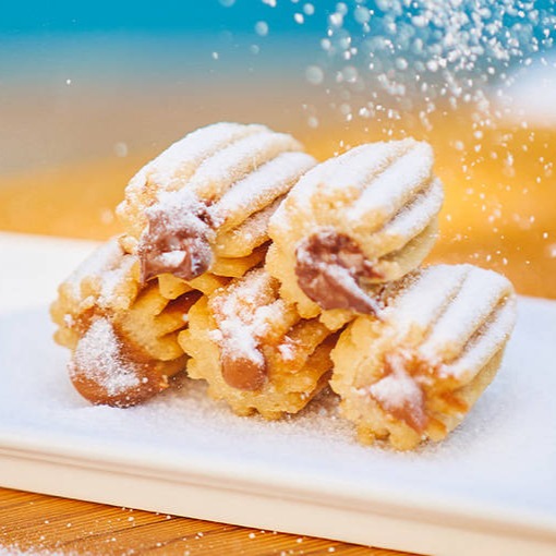 Bacha de 5 litros de helado de crema de churros fritos con veteado de manjar. Valor + IVA