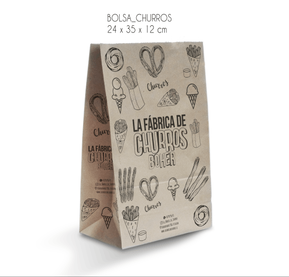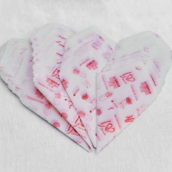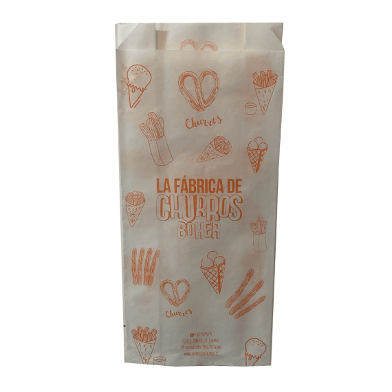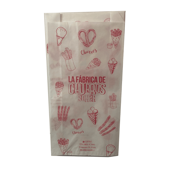 Bolsas antigrasa para churros en tamaño M de 17 x 34 cm. con fuelle lateral de 6 cm.