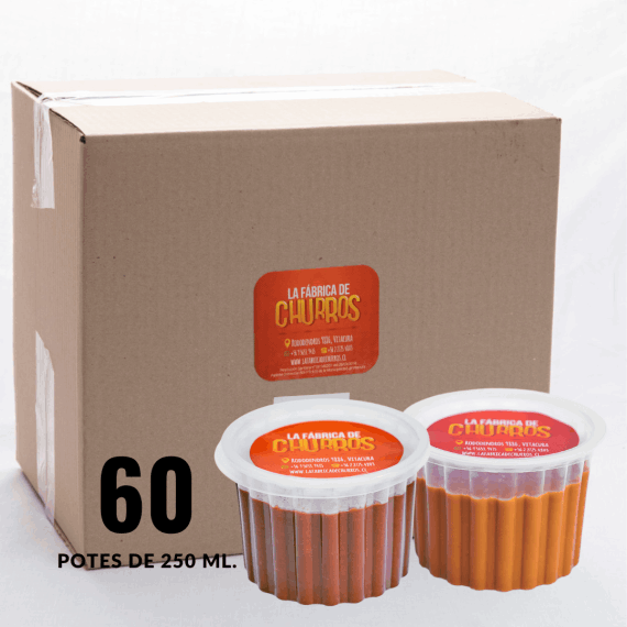Caja con 60 potes de 250 ml. de Salsa de Manjar o Chocolate a la taza.
