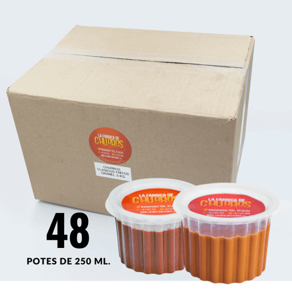 Caja con 48 potes de 250 ml. de Salsa de Manjar o Chocolate a la taza.
